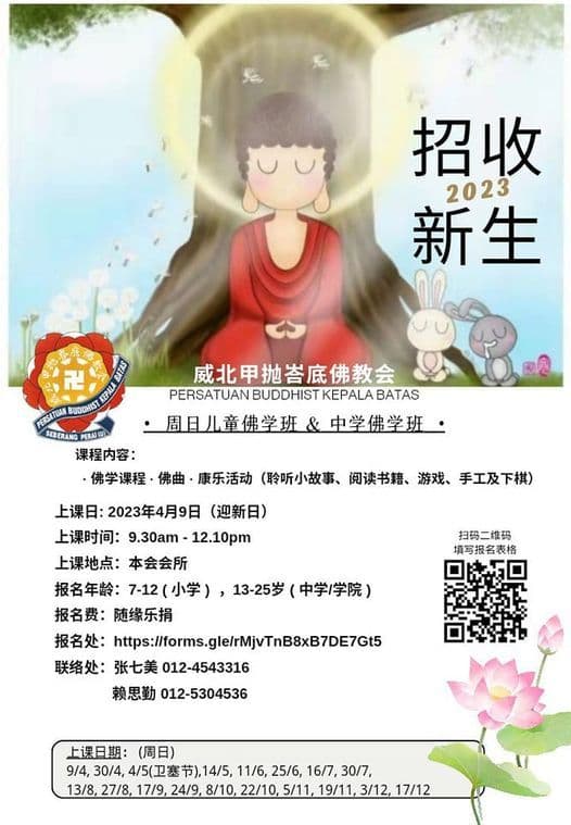Buddhist class of 2023 officially startsEnrollment for Sunday Buddhist classes in the new school year 2023!Sunday Buddhist class at Kha Dai Buddhist Church will officially start on April 9, 2023! Now accepting google form registration! New and old students are welcome to register online. Register quickly, so that teachers in each class can set up class groups. See you on April 9!May we learn from Buddhism and do what Buddha does! Learn to love your lover in life, self-interest!Registration link: