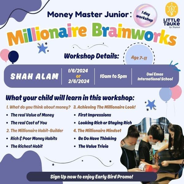 Camp Millionaire Workshop is tailored specifically for children aged 8-11, where they'll unlock the secrets to mastering essential money concepts!